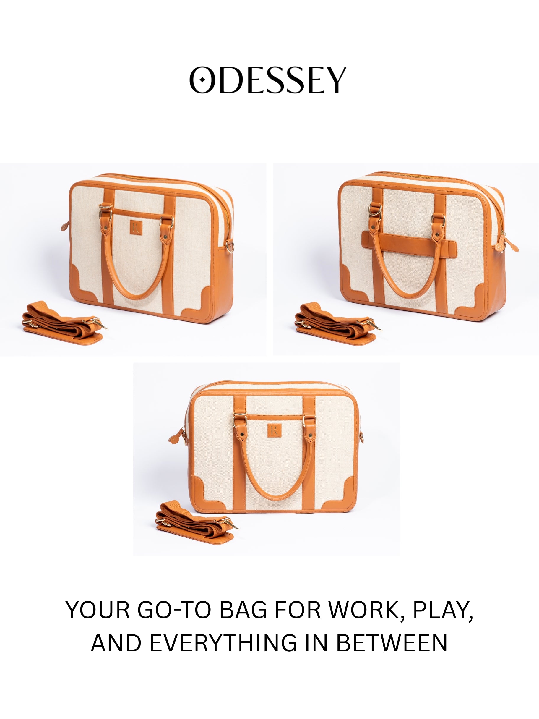 This is a stylish and functional laptop bag that combines elegance with practicality. Its design features a beige fabric body complemented by rich brown leather accents, including the handles, edges, and corners, giving it a sophisticated and professional appearance. It also comes with a detachable shoulder strap, making it versatile for both carrying styles. This structured laptop bag has an interior with room for a 14” laptop, slip pockets, a zipper pocket, pen slots, and a key holder for easy organization. It comes with a detachable strap for shoulder or crossbody wear. With Juco exterior with premium Faux (Vegan) Leather, and durable base studs, Henry is your perfect sidekick for conquering the day.