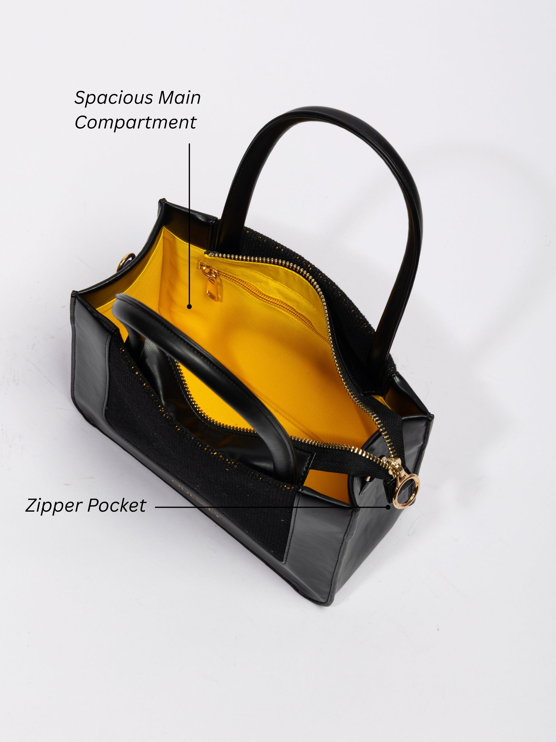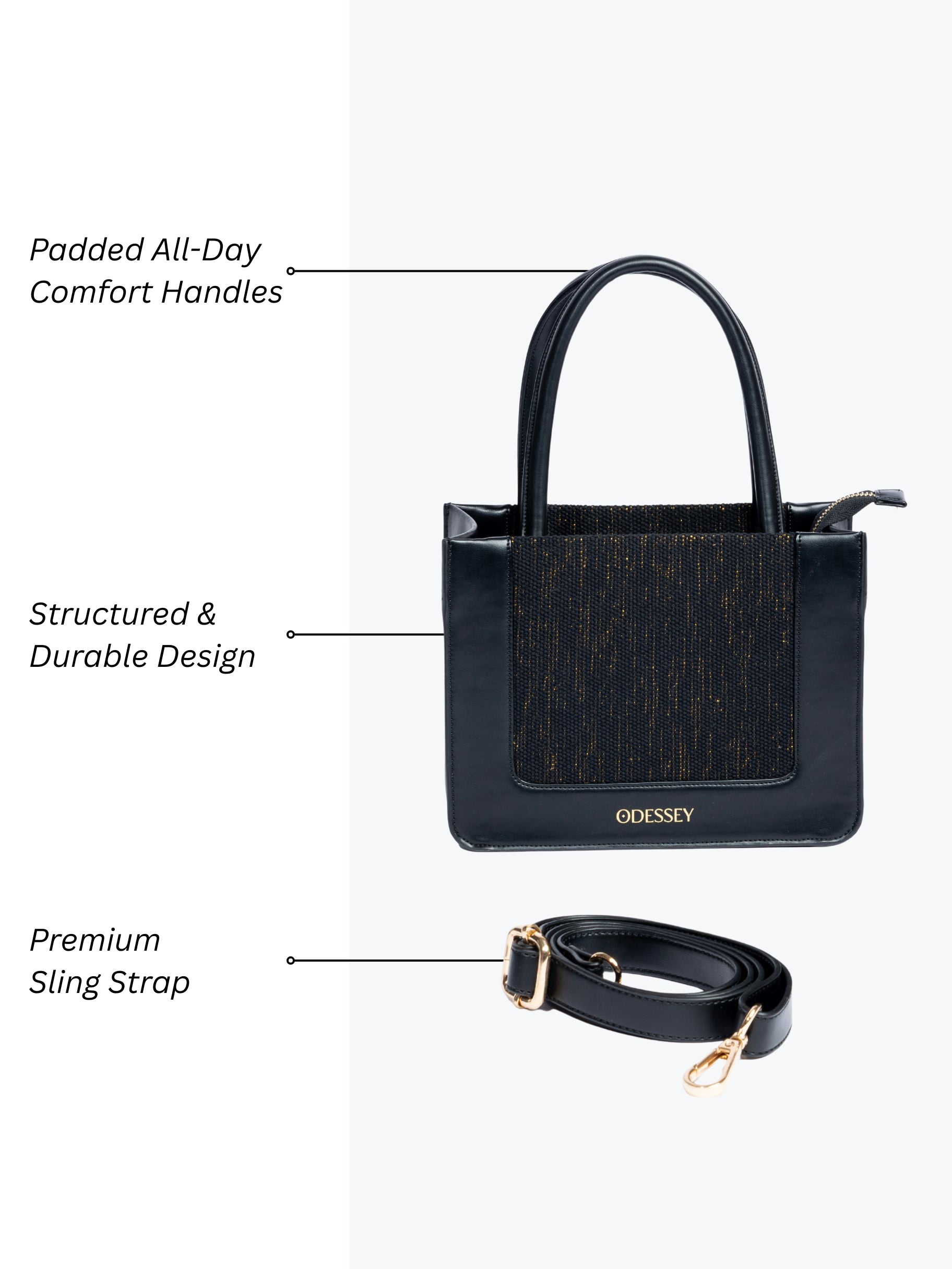 Meet the Odessey Sling — a compact yet striking essential crafted for your everyday elegance. With its structured silhouette, dual-tone finish, and refined gold logo detail, this bag brings sophistication to your shoulder.